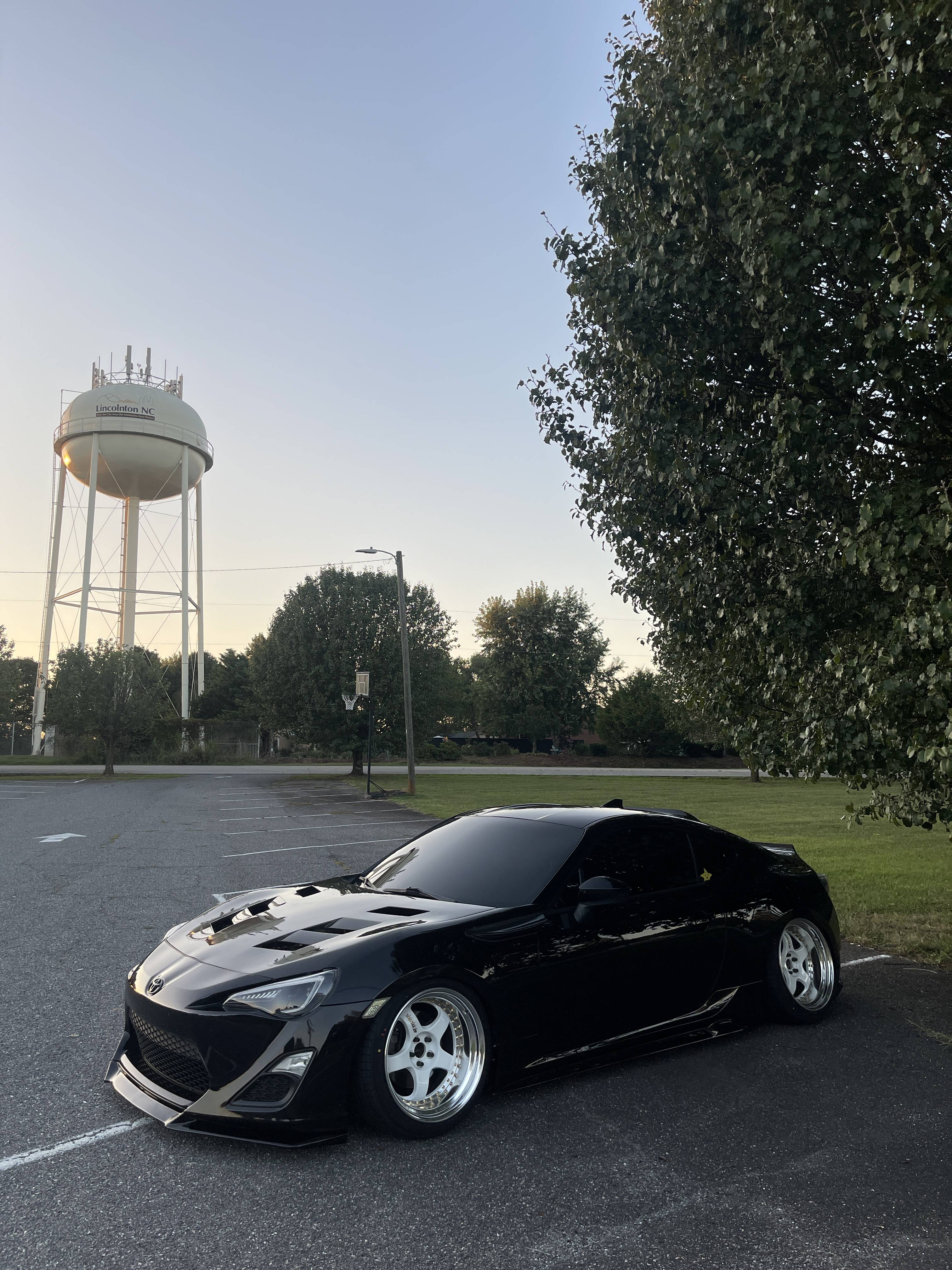 Vis racing carbon fiber hood, Vis racing Carbon fiber trunk, Carbon fiber fender fins, Trd style front lip, BaysonR side skirts, BaysonR rear diffuser, Rear window visor, Vland headlights, Clear Toms V2 taillights, clear side markers Custom Raven black paint (like a black pearl)