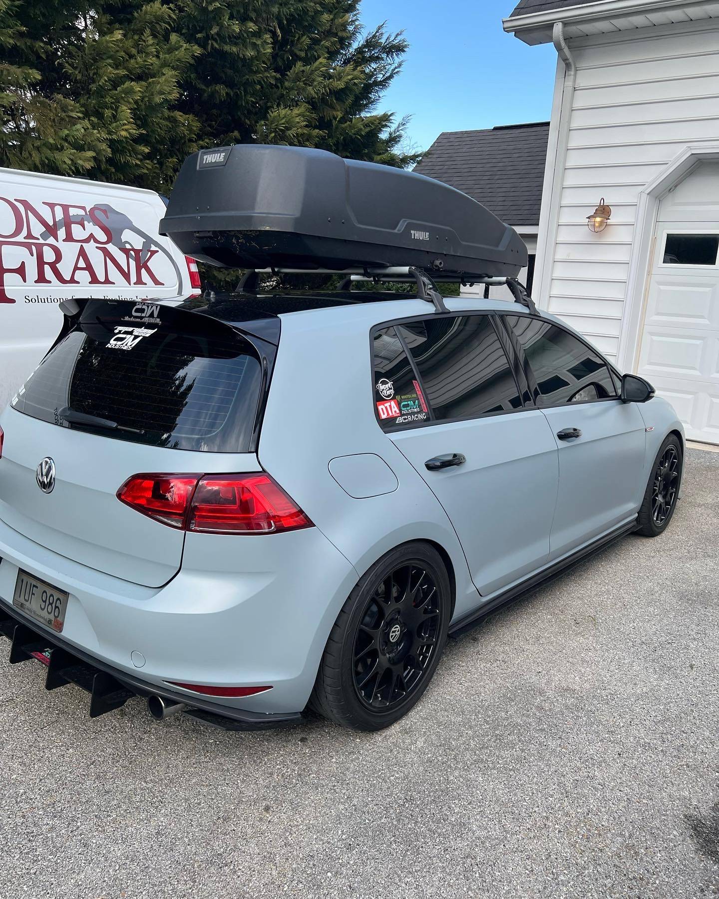 It has BFI shift knob, BFI shift boot, BFI e brake boot, CJM AP vent mount, and I’m currently working on a custom trunk set up for my detail stuff and plaid trim.
