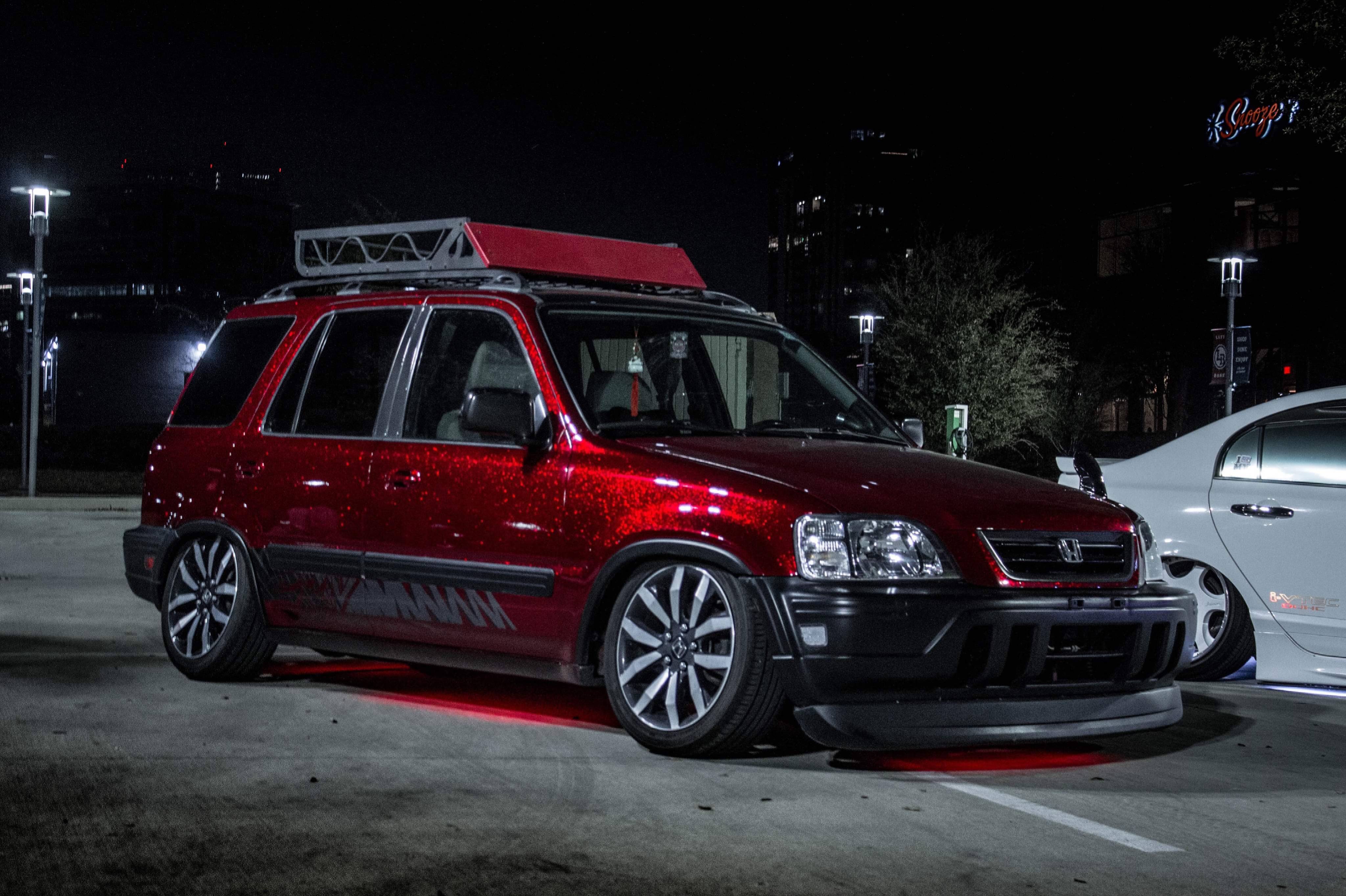 Custom paint, carbon fiber moldings, custom side skirts, custom front lip, JDM tailgate, custom rear bumper, JDM fender mirror